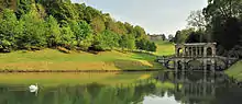 The Palladian bridge, which is a copy of the one at Wilton House,[24] has been designated as a Grade I listed building[25] and scheduled monument.[26][27] It was repaired in 1936.[28]