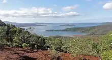 Prony Bay or Baie de Prony is a bay of the southern end of New Caledonia. A number of small streams flow into the bay, including the Rivière Bleue and the Ruisseau de la Bergerie. Deposits of red clay increased between 1955 and 1968 due to extensive mining in the area. There are said to be oversized madrepore species growing in turbid waters, according to diving reports.[1]