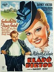 Property for Sale (Hungarian: Eladó birtok) is a 1941 Hungarian romantic comedy film directed by Viktor Bánky and starring Zita Szeleczky, Antal Páger and Hilda Gobbi.[1][2] The film's sets were designed by the art director Mátyás Varga.