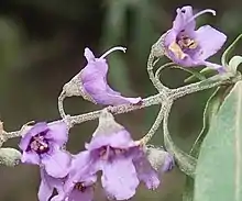 Prostanthera cineolifera, commonly known as the Singleton mint bush,[2] is a species of flowering plant in the family Lamiaceae and is endemic to eastern New South Wales. It is an erect shrub with hairy branches, narrow egg-shaped leaves and clusters of pale mauve to dark purple-mauve flowers arranged on the ends of branchlets.