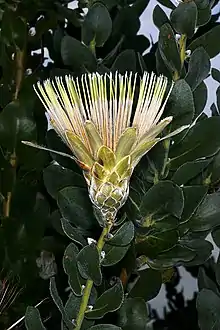 Protea aurea subsp. potbergensis, also known as the Potberg protea, or Potberg sugarbush, is a flowering plant of the genus Protea. It is endemic to South Africa and is found only in the Potberg near Cape Infanta. It grows to a height of 5 metres, and flowers primarily from May to June.[1][2][3]