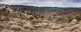 Kern County | 1994 | 88,290 acres (137.95 sq mi; 357.3 km2)[45] | 5,000–7,294 ft (1,500–2,223 m)[22] | The Scodie Mountains, a low mountain range located at the far southeasternmost extent of the Sierra Nevada, are protected by this wilderness area. These mountains are quite arid, generally receiving only 10 to 15 inches of rainfall-equivalent precipitation per year. As a result, this area contains features of both the Sierra Nevada and Mojave Desert ecosystems, forming a sort of transition zone at the edge of the desert. The driest locations are home to desert vegetation such as sagebrush, creosote, and Joshua trees, and the bajadas at the foot of the mountains are home to desert animals including numerous lizards and the yellow-eared pocket mouse. In areas that receive somewhat greater rainfall, vegetation common to the drier parts of the Sierra, such as pinyon, juniper, canyon oak, and grey pine predominate.[46] |