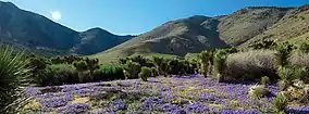 Kern and Tulare counties | 1994[50] | 74,060 acres (115.72 sq mi; 299.7 km2) | 3,120–8,453 ft (950–2,576 m)[22] | At nearly 8,500 feet, Owens Peak is the highest point in a cluster of subsidiary ranges at the interface between the Mojave Desert and the bulk of the Sierra Nevada. Receiving only light use, this area remains relatively pristine. It is a haven of ecological diversity, and is home to a number of notable large fauna such as the black bear, mule deer, golden eagle, mountain lion, and prairie falcon. In addition to the widespread sagebrush and pinyon-juniper woodland, two plant species are also noted as local to the area: the Nine Mile Canyon phacelia and the monkey flower.[50] |