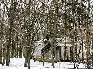 In 1958 the cemetery was closed and in 1974 it was demolished and turned into a park by the Soviet authorities.[3] The only remaining evidence of a cemetery is the Classical mausoleum for Jan Fryderyk Niszkowski, a prominent surgeon.[4] The great chapel was also demolished and replaced by the Palace of Marriages (Lithuanian: Santuokų rūmai).