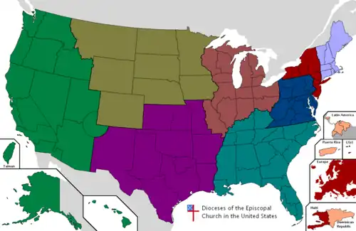 Province 8 (VIII), also called the Province of the Pacific, is one of nine ecclesiastical provinces making up the Episcopal Church in the United States of America. It is composed of sixteen dioceses in the nine states of Alaska, Arizona, California, Hawaii, Idaho, Nevada, Oregon, Utah, and Washington. Also part of the province are the Episcopal Diocese of Taiwan, which has been a diocese of the Church since 1960; and the Navajoland Area Mission which was established in 1979 to serve the specific spiritual and cultural needs of the Navajo Nation.