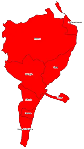 - Castel Iablanizza (Jablanica): Cottésevo, Iasena of Bisterza, Terciane, Verbizza, Verbovo, Villa Podigraie, Zabice Castelvecchio di Sopra Zemon, Zemon di Sotto.