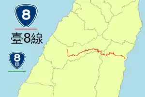 The Central Cross-Island Highway (Chinese: 中部橫貫公路) or Provincial Highway 8 is one of three highway systems that connect the west coast with the east of Taiwan.
