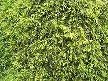 Pseudanomodon attenuatus (syn. Anomodon attenuatus), the tree-skirt moss, poodle moss, or anomodon moss, is a species of moss in the family Neckeraceae or Anomodontaceae, depending on authority.[1] It has a wide-ranging distribution and can be found from Canada to Central America, with a particularly heavy presence in the eastern United States, and the Caribbean as well as in Europe and Asia (India, eastern Russia, and Turkey).[2]