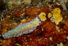 Pseudoceros laingensis feeds on various colonial ascidians.