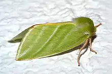 Pseudoips prasinana, the green silver-lines is a moth of the family Nolidae, common in wooded regions, and having a wingspan of 30–35 mm. It is found in the Palearctic realm (North and Central Europe, Russia, Siberia, Korea, Japan).