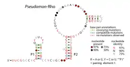 ![]() Consensus secondary structure of Pseudomon-Rho RNAs | |