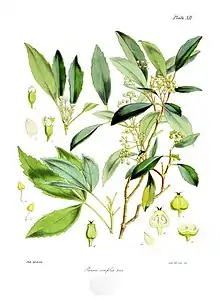 Raukaua simplex was first described in 1786 by Georg Forster as Panax simplex in Florulae Insularum Australium Prodromus.[8] In 1997, Mitchell, Frodin and Heads redescribed it, assigning it to the genus, Raukaua, thus naming it Raukaua simplex.[1][2]