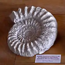 | Fossil of Pseudopeltoceras chauvinianum from France, on display at Galerie de paléontologie et d'anatomie comparée in Paris | |