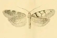 The wingspan is about 12.5 mm.[3] The forewings are white, divided in four fields by three brown bands. The hindwings are whitish-grey.[4]