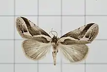 - ↑ Jiang, Nan; Yang, Chao; Xue, Dayong; Han, Hongxiang (March 2015). "An updated checklist of Thyatirinae (Lepidoptera, Drepanidae) from China, with descriptions of one new species". Zootaxa. 3941 (1): 1–48. doi:10.11646/zootaxa.3941.1.1. PMID 25947492.