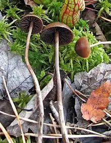 Psilocybe fuscofulva is a species of mushroom in that grows on Sphagnum moss and rarely decaying wood in peat bogs in North America and Europe. It is the only species of Psilocybe currently known to not produce psilocybin or psilocin.[1] The phylogenetic placement[1] indicates its close relationship to Psilocybe silvatica and Psilocybe semilanceata. It was previously most commonly known as Psilocybe atrobrunnea but the holotype does not exist and the neotype of this species was lost, so Psilocybe fuscofulva, which was previously regarded as a synonym but has a holotype, was resurrected to replace it.[1]
