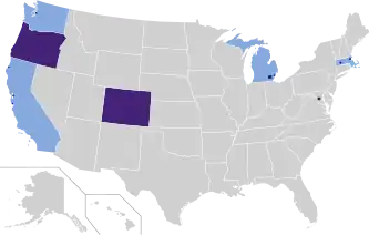 Oregon voters passed a 2020 ballot measure making it the first state to both decriminalize psilocybin and also legalize its supervised use.[1][2] Colorado followed with a similar measure in 2022.[3] The use, sale, and possession of psilocybin in the United States is illegal under federal law.