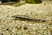 Psilorhynchus sucatio, the river stone carp or sucatio minnow, is freshwater ray-finned fish a species of torrent minnow. The specific name is a latinization of one of the local names for this species, sukati.[3] It is a widely distributed species and is found in Nepal and Bangladesh as well as the Indian states of Arunachal Pradesh, Assam, Bihar, Manipur, Meghalaya, Nagaland, Uttar Pradesh and West Bengal. P. sucatio occurs in water with a fast current preferring the edges of sandy streams. In the lowlands it is abundant near emergent or overhanging vegetation, it is an altitudinal migrant. At a maximum length of 5 cm it is too small to be of any interest to fisheries but it is collected for the aquarium trade.[1] It is the type species of the genus Psilorhynchus.[4]