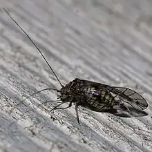 Psococerastis gibbosa is a species of Psocoptera from the Psocidae family that can be found in Great Britain and Ireland. They are also common in Austria, Benelux, Bulgaria, Croatia, Finland, France, Germany, Hungary, Italy, Latvia, Poland, Romania, Spain, Switzerland, and Scandinavia.[1] The species are yellowish-black coloured, and are striped.[2]