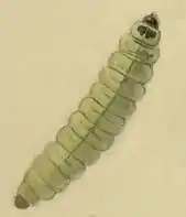 The larvae feed on Helichrysum arenarium species (including Helichrysum arenarium) and Inula dysenterica. They feed on the flowers of their host plant. Larvae can be found in August.