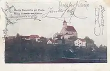 It is best known for its Basilica Minor, and also for a late-14th-century statue of the Virgin of Mercy. It depicts Mary with a long coat protecting a crowd underneath it. The parish church is built on top of a hill and is a dominant landmark of the area. The church itself is known as the Basilica of the Virgin of Mercy (Slovene: Bazilika Marije Zavetnice s plaščem) and is one of the best-known pilgrimage churches in Slovenia.[3] It belongs to the Roman Catholic Archdiocese of Maribor.[4] Nearby are also a second church dating to the 16th century and dedicated to Saint Leonard and a 19th-century chapel dedicated to Saint Roch.[5] Along the road toward Stogovci there is a stone pillar dating from 1696 known as the Gigler shrine (Giglerjevo znamenje).[6]