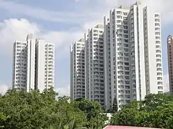 Choi Yuen Estate (Chinese: 彩園邨) is a public estate located near Sheung Shui station and Landmark North in Sheung Shui Town.[11][12] It is the first public housing estate in North District,[13] which consists of 6 residential blocks built between 1981 and 1983.