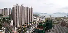Bauhinia Garden (Chinese: 寶盈花園) is a HOS and PSPS estate, located near Tseung Kwan O Plaza, The Grandiose,[6][7] Tseung Kwan O station. It was jointly developed by the Hong Kong Housing Authority and Shui On Group.[8][9] It consists of 8 residential blocks built on the reclaimed land and completed in 2001.[10] In the 1990s, it suffered serious unusual ground settlement when Tseung Kwan O line was being constructed.