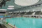 Victoria Park Swimming Pool, built and managed by the Urban Council and funded by the Hong Kong Jockey Club, was the first public swimming complex in Hong Kong. The 50 by 20 metre pool was officially unveiled on 16 October 1957 by former Governor Sir Alexander Grantham. It was highly popular with residents, and served over 360,000 over its first year of operation.[3] The spectator stand seated 1,700. This facility operated continuously until 2013, when it was closed and replaced by a new indoor swimming pool (of the same name) on the site adjacent. The old pool will consequently be demolished, sparking some mourning of the loss of a piece of the collective memory of many Hong Kong residents. In response, the LCSD stated they would "explore the possibility" of displaying some items of historical significance, such as the plaque unveiled by Governor Grantham, at the new facility, and planned to make use of "3D laser scanning technology" to record the architecture of the old pool complex.[3]