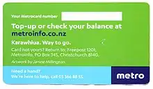 - ↑ "Fares | Metro Christchurch". www.metroinfo.co.nz. Retrieved 2 November 2023.