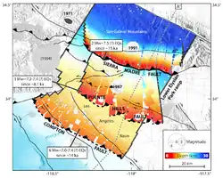- ↑ Yeats, Robert (2012), Active Faults of the World, Cambridge University Press, pp. 110, 111, ISBN 978-0521190855