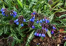 • 'Dordogne' – with blue flowers carried on upright stems, large lanceolate leaves, spotted silver-white.