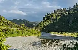 The Inland Pack Track and the Paparoa Track both commence from the south bank of the river at Waipori Road, where there is a suspension bridge across the river. The section of the trail from the Punakaiki River to the Pororari River is dual-use – shared between walkers and mountain bikers, and serves as the northern entry or exit point of the Paparoa Track.[1]