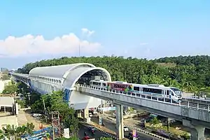 Punti Kayu Station (formerly Telkom Station) is a station of the Palembang LRT Line 1. The station is located between Asrama Haji station and RSUD station.
