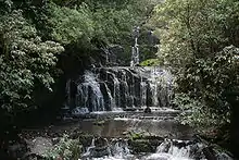 The Purakaunui Falls are a cascading three-tiered waterfall on the Purakaunui River, in The Catlins of the southern South Island of New Zealand.[1] As one of very few South Island waterfalls away from the alpine region,[2] it has long been a popular destination and photographic subject.[3]