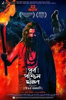 Purba Paschim Dakshin is a Bengali spiritual thriller film directed by Rajorshi Dey and produced by Suchandra Vaaniya.[1] This film is based on Ebong Inquisition, compilation of three Paranormal fiction of Avik Sarkar.[2][3][4] The film released on 22 November 2019, under the banner of Just Studio.[5] It is the last film acted by Mrinal Mukherjee[6] and debut film of Manabi Bandyopadhyay, India's first transgender college Principal.[7][8]
