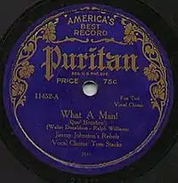 BD&M went bankrupt in 1925, and NYRL dissolved by court order on January 1, 1926.[3] Yet Puritan continued to operate until 1929, using masters from companies such as Regal Records (1921). Puritan's releases reflected the output of Paramount's New York facility, issuing mainstream dance records and popular songs. It continued to do so, for a short time, after the parent label turned its undivided attention to country music and blues, recorded in and around Chicago and by Gennett Records in Richmond, Indiana.