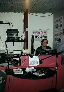 Purple Radio was previously known as Purple FM and later Purple 107.[4] The station launched in 1996 and has been located variously within Dunelm House; in the College of St Hild and St Bede (1997–1999) and a small studio at Van Mildert College (1999–2002). Traditionally during this time the station aimed to run for two four-week RSL FM broadcasts per academic year. The station initially broadcast on frequencies around 105.4 FM, though later a frequency of 107 FM was retained. During the November 1999 broadcast pioneering use was made of outside broadcast equipment that utilised the University's internal telephone network to send transmissions from remote locations to the studio. During 2000 Purple FM was simulcast over the internet for the first time; however this service was only available from 7am to 11pm as the equipment required to run the service was sited in a student's bedroom.