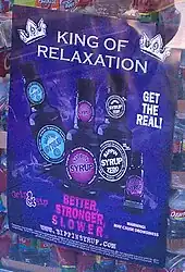 Houston producer DJ Screw popularized the concoction, which is widely attributed as a source of inspiration for the chopped-and-screwed style of hip hop music.[18][19] The promethazine and codeine concoction first gained popularity in the underground hip hop scene in Houston,[19] where musician Big Hawk said it was consumed as early as the 1960s and 1970s, becoming more widely used in the early 1990s.[20] Because of usage by rap artists in Houston, it became more popular in the 1990s.[21] Its use later spread to other States in the South.[18] In June 2000, Three 6 Mafia's single "Sippin' on Some Syrup", featuring UGK, brought the term purple drank to a nationwide audience.[22]