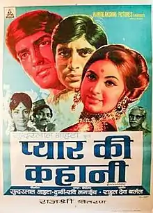 Pyar Ki Kahani (transl. The Story of Love) is a 1971 Indian Hindi-language romantic drama film directed by Ravikant Nagaich. It is a remake of the 1964 Tamil film Kai Kodutha Deivam.[1] The film stars Amitabh Bachchan and Tanuja. The movie bombed and is one of the 11 consecutive flops of Amitabh Bachchan.