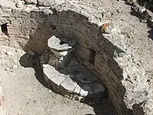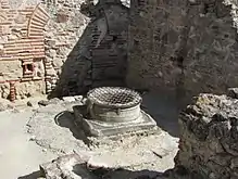 In the apse, facing the sea, there was a Fryktoria, to exchange light signals with the opposite Chalkidiki peninsula.[6][7] In this way, light signals were transmitted to larger distances by means of torches, and messages could be transmitted within a short time over hundreds of kilometers.
