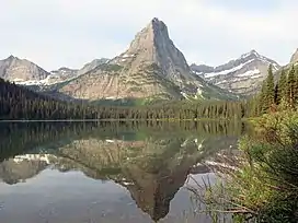 Pyramid Peak (8,200–8,280 feet (2,499–2,524 m)) is in the Lewis Range, Glacier National Park in the U.S. state of Montana. Mokowanis Lake lies just northeast of the peak, and Atsina Lake is to the west.[3]