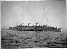 The cruiser HMS Hawkins escorted Dominion Monarch in Convoys WS 22B and WS 26B in the Indian Ocean