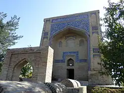 Qaffol Shoshi mausoleum (Uzbek: Qaffol Shoshiy maqbarasi) is a mausoleum in Tashkent, Uzbekistan, built in honor of Imam Abu Bakr Muhammad ibn Ali ibn Ismail al-Kaffal ash-Shashi.[1][2][3] The original tomb did not survive in its initial form. In its current state, the mausoleum was constructed in 1542 by the royal architect of that time, Gulyam Husayn. It is an asymmetrical domed portal mausoleum, known as a khanqah.[4] Khanqahs were designed to provide pilgrims shelter in residential places called “khujrahs”.[4] Mausoleum complexes often included a mosque and a kitchen.[1][5][6] To the south of the main building in a small courtyard, there are later burial places (saganas).