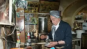 Arbil (Kurdish: Hawler) contains an extensive Qaysari, just south of the citadel in the center of town that was first established in the early 13th century AD. The Qaysari is entered through the numerous alleys that surround it. Once inside, shoppers walk through a maze of narrow paths between the shops, underneath a roof of corrugated metal. Most alleys feature a unique product that is sold by a majority of the vendors in that location. The northeast corner of the Qaysari contains a north-south alley offering honey and dairy products, such as yogurt and cheeses. Many shops offer Chai Kurdi (Kurdish tea) as a complimentary drink with good business from the local tea vendors in the bazaar. It is very popular prior to festivities such as Newroz (Kurdish New Year) in which business excels with larger crowds and customers.[1][2]