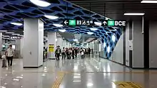 Qianhaiwan station (simplified Chinese: 前海湾站; traditional Chinese: 前海灣站; pinyin: Qiánháiwān Zhàn; Jyutping: Cin4 Hoi2 Waan1 Zaam6) is a station on the Line 1, Line 5 and Line 11 of the Shenzhen Metro in Shenzhen, Guangdong Province, China. Line 1 platforms opened on 15 June 2011, Line 5 platforms opened on 22 June 2011, and Line 11 platforms opened on 28 June 2016. Qianhaiwan Station is located under Chenwen Road in Shenzhen's Nanshan District.[1]
