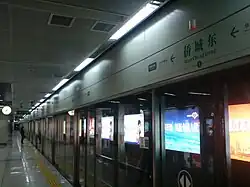 Qiaocheng East station (simplified Chinese: 侨城东站; traditional Chinese: 僑城東站; Jyutping: Kiu4 Sing4 Dung1 Zaam6; lit. 'Overseas Chinese Town East station'), formerly Qiaochengdong station, is a station on Line 1 of the Shenzhen Metro. It opened on 28 December 2004. It is located underground at Shennan Dadao (Chinese: 深南大道), west of Qiaochengdong Lu (simplified Chinese: 侨城东路; traditional Chinese: 僑城東路) and east of Xiaoshahe Lu (Chinese: 小沙河路), in Futian District, Shenzhen, China. It is near the east end of Splendid China Folk Village (simplified Chinese: 锦绣中华; traditional Chinese: 錦綉中華) and Overseas Chinese Town (simplified Chinese: 华侨城; traditional Chinese: 華僑城),[1] hence its name.