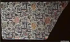 Kesi (cut silk) silk tapestry is one type of textile that was first used in the Tang dynasty, but continued to proliferate until the end of the Qing. The technique of cutting silk can also be used to replicate famous paintings and paintings of literati but mostly featured symmetrically composed designs.[25] Kesi was mostly used for table and chair coverings during formal occasions but their patterning also became imbued in other forms of surfaces, such as lacquer, jade, and bamboo carving.[26] Kesi silk tapestry were among the many art forms catalogued during the Qianlong emperor's reign (producing the Bidian Zhulin and the Shiqu Baoji, published in 1744–1745, 1793, and 1816), alongside painting and calligraphy.[27]
