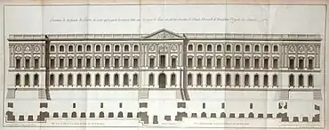 Engraving of the south façade of the Louvre, on the Quai du Louvre, from Jean Mariette's L'Architecture françoise (1738)