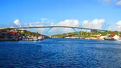 Koningin Julianabrug is a four lane road bridge across St. Anna Bay in Willemstad, the capital of Caribbean island country Curaçao, which is part of The Kingdom of The Netherlands. The bridge is named after Juliana of the Netherlands. While under construction the eastern part of the bridge collapsed in 1967 killing fifteen workers, and was replaced. The current bridge opened on Queen's Day, 30 April 1974.