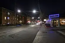 On February 20, 2008, a large fire destroyed several buildings on the south side of the street, between Bathurst and Portland Streets. The block had been declared a heritage conservation district by the city only the year before. Toronto Fire Services' "active incidents" website reported the fire as six-alarm intensity, with over 14 separate units dispatched to the scene throughout the day. Several neighbourhood businesses and apartments were destroyed in the blaze.[19][20][21] In some cases, the destruction caused by the fire gave rise to additional angst over the changing character of Queen Street West and the potential nature of the new development that would eventually replace the burned buildings.[22]
